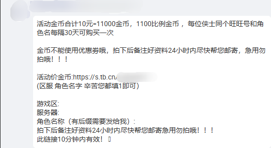 近期在淘宝、QQ群和微信群等多处出现以远低于市场价格频繁出售金币的线下交易情况。经过详细调查,我们发现一批淘宝店铺通过创建虚假交易、兜售低价金币刷单交易等手段,进行商铺销量刷单,刷单用金币来源不明。该行为不仅违反了国家相关法律法规规定,还严重损害《剑网3》及玩家的合法权益。对此,我们已在持续取证并将进一步采取法律手段进行维权。